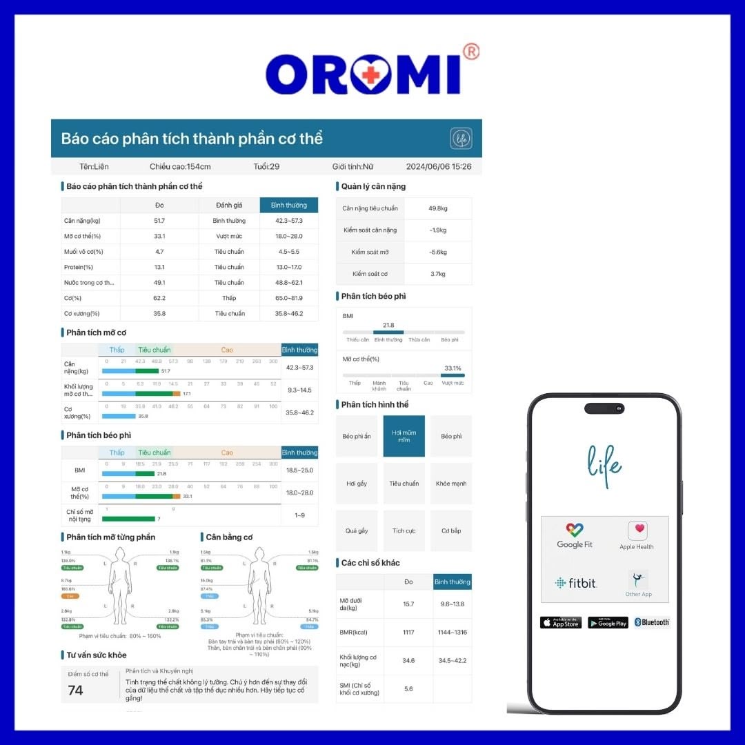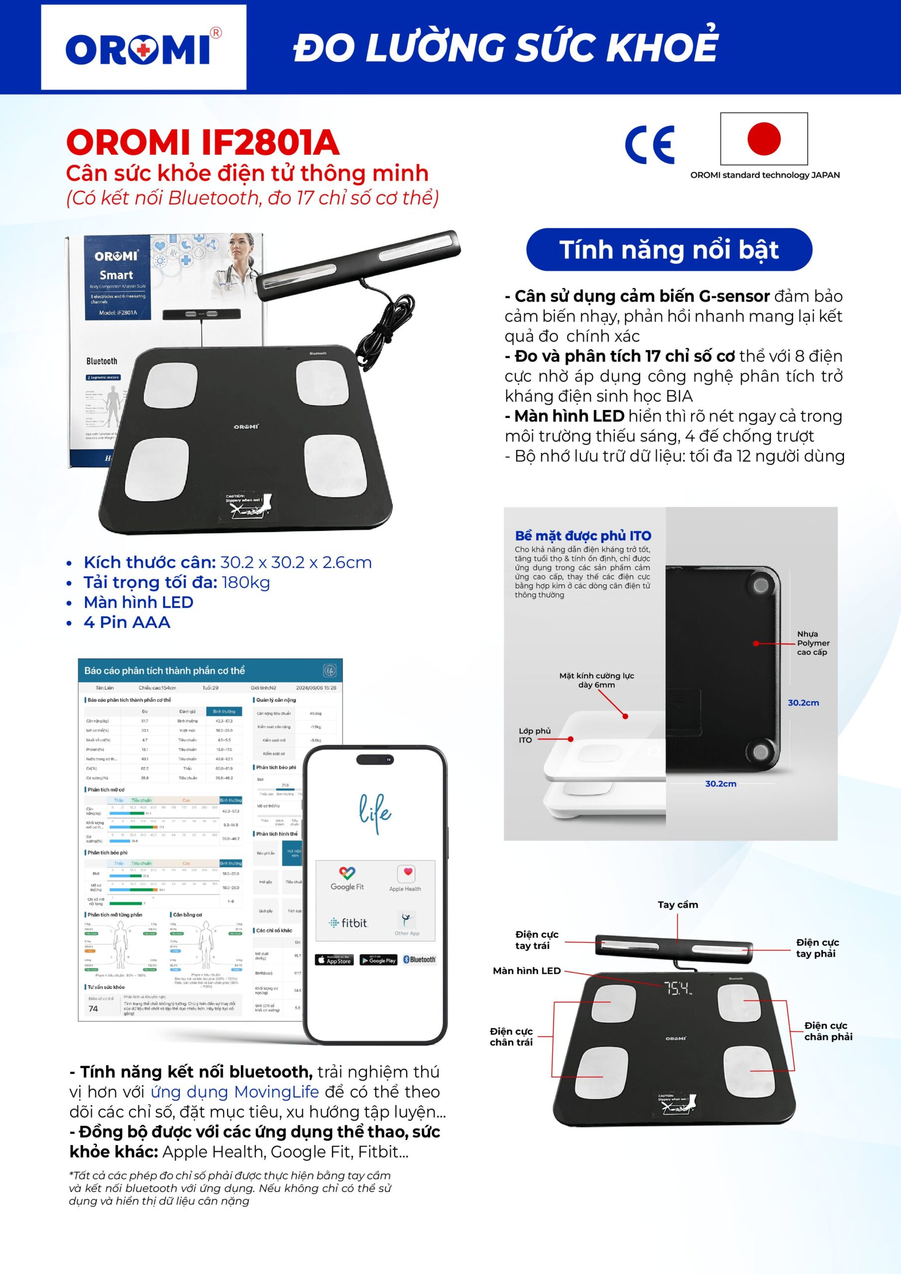 Cân điện tử phân tích 17 chỉ số cơ thể thông minh Oromi iF2801A có kết nối bluetooth